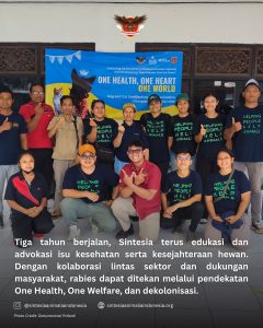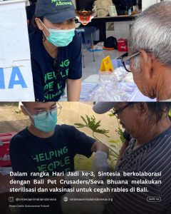 Dalam peringatan Hari Jadi ke 3, pada 10 Oktober 2025, Sintesia Animalia Indonesia (Sintesia) berkolaborasi dengan Seva Bhuana dalam melakukan sterlilisasi dan vaksinasi di Desa Sidemen, Kab. Karangasem. Kegiatan ini juga diisi dengan edukasi dan dialog bersama masyarakat setempat dalam upaya pencegah dan pengendalikan kasus rabies di wilayah tersebut.